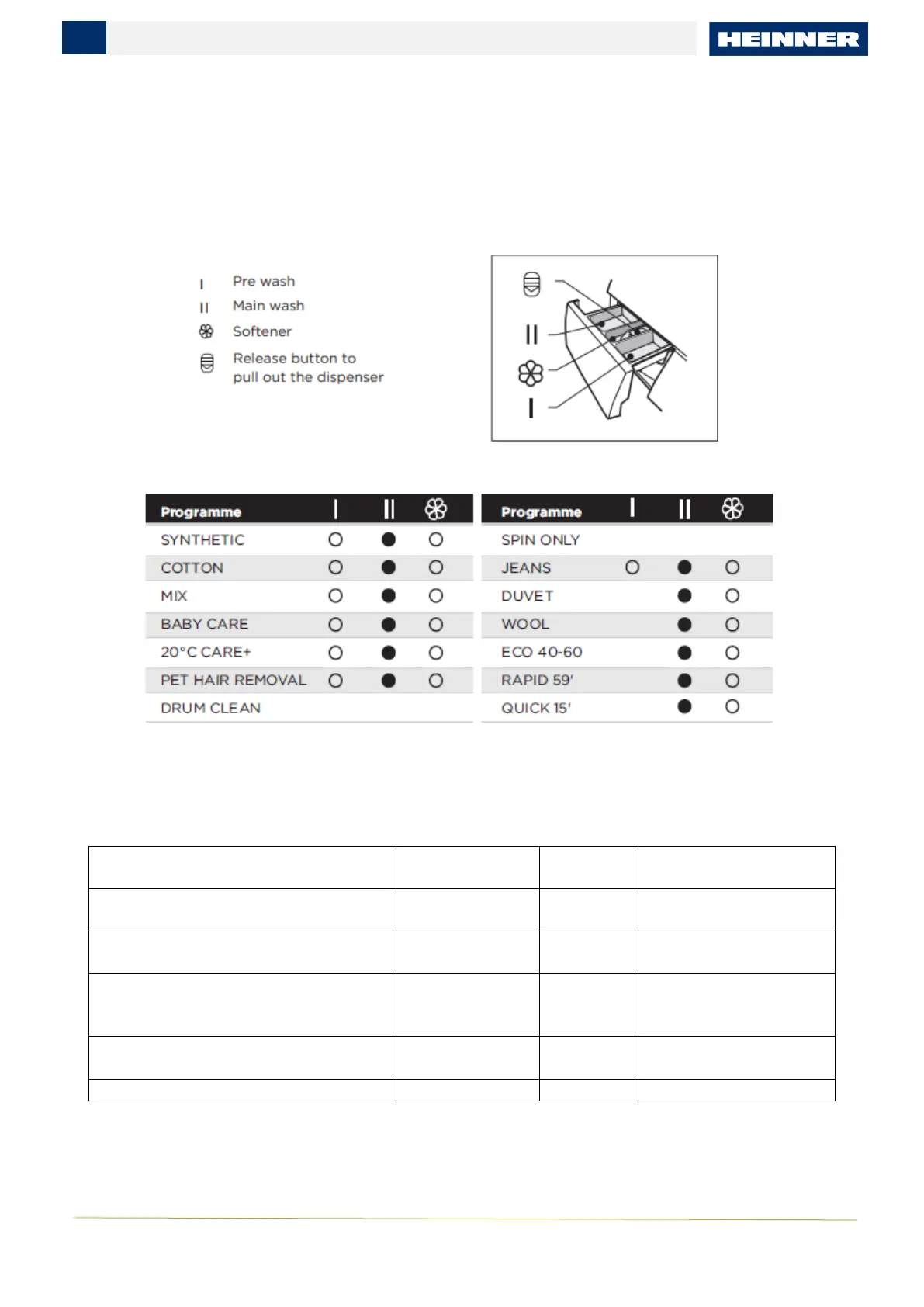 • Detergent only need to be added in compartment I ”after selecting pre-wash function.
