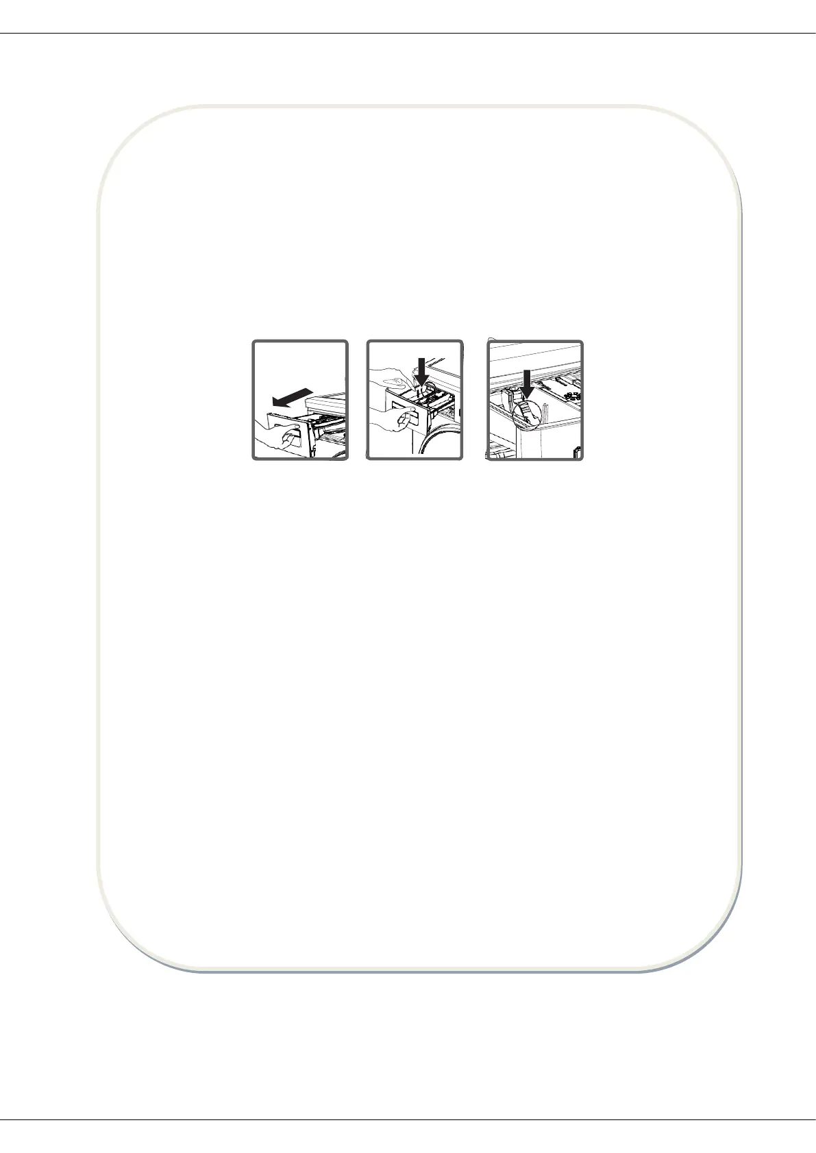 - Keep on pulling by depressing on the section shown below in the detergent drawer and