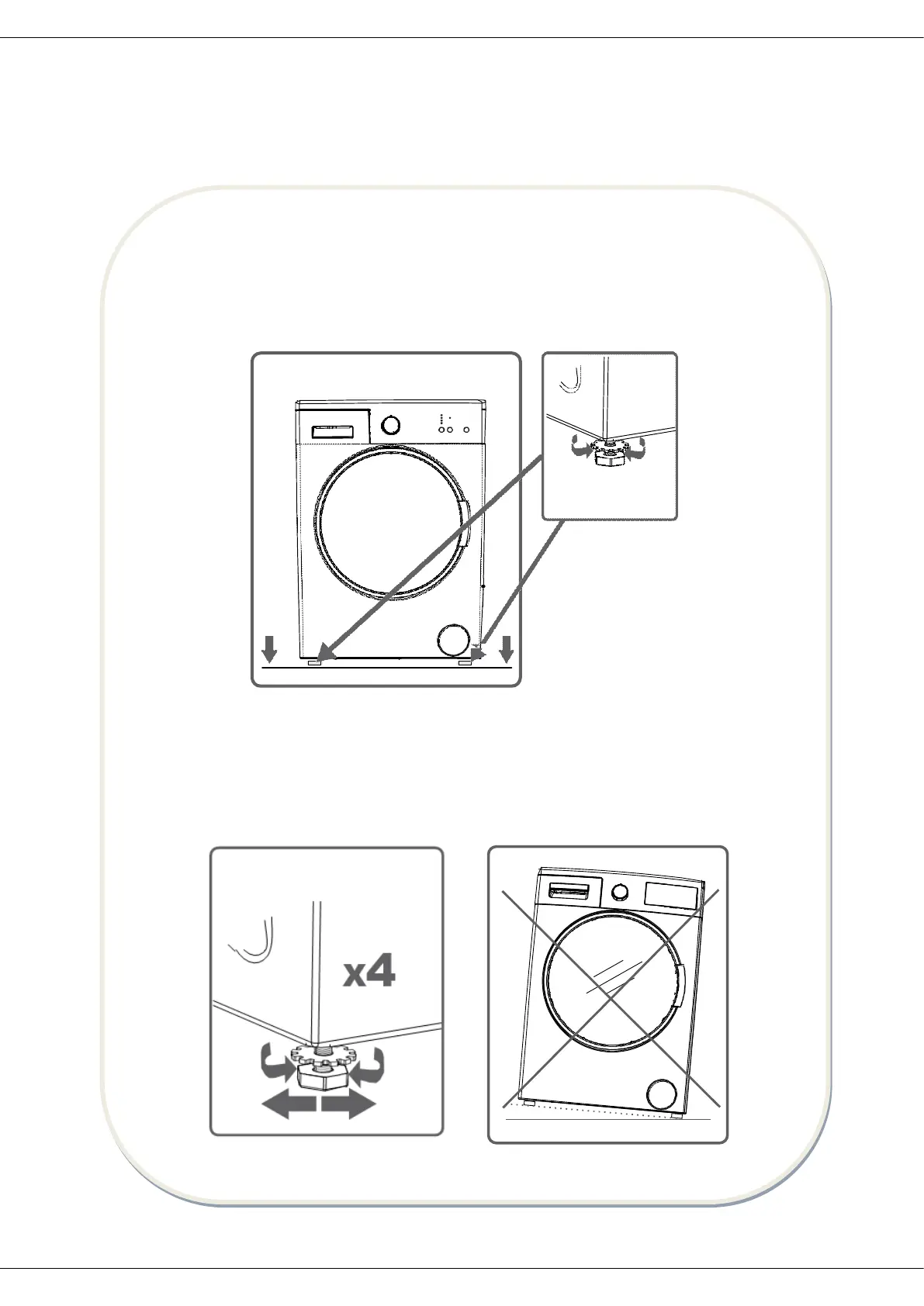 Ajustaţi poziţia picioruşelor în sus şi jos prin rotirea lor.