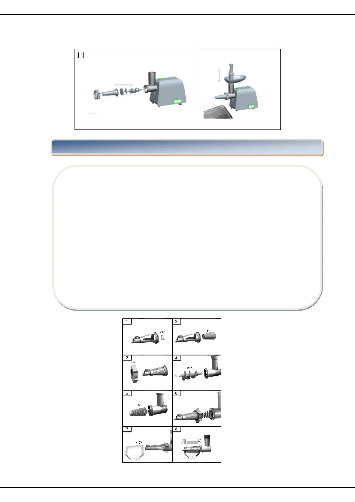 2. Helyezze be a kúp alakú tartozékba a paradicsomszűrőt a műanyag rögzítő gyűrű mellé (2.