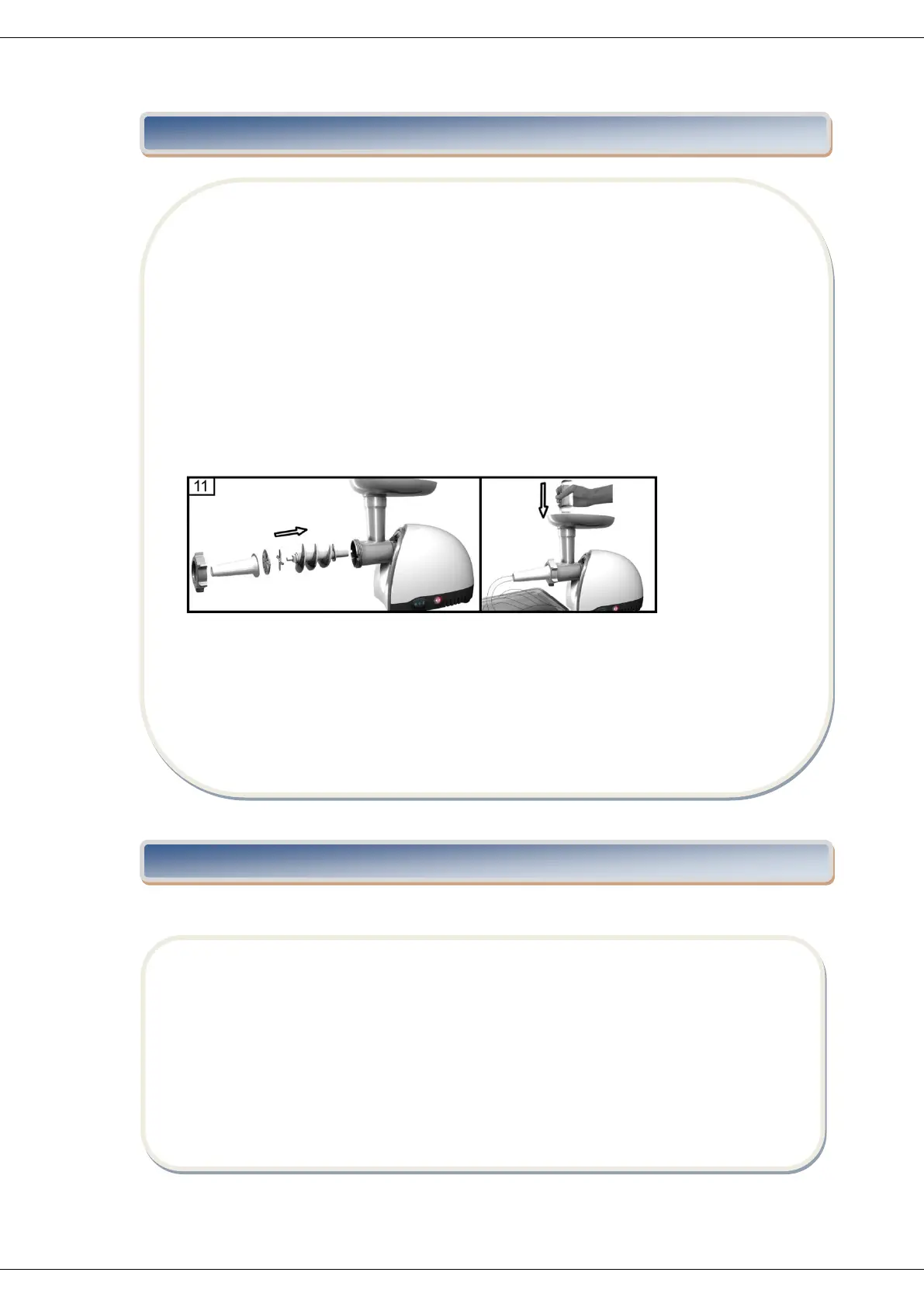 - Place the sausage horn on the cutter housing and screw the ring on the cutter