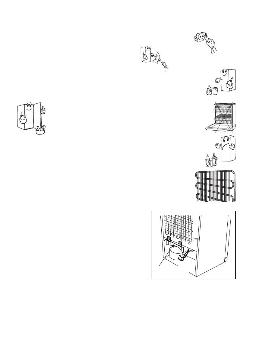 • The freezer should be cleaned periodically using a solution of bicarbonate