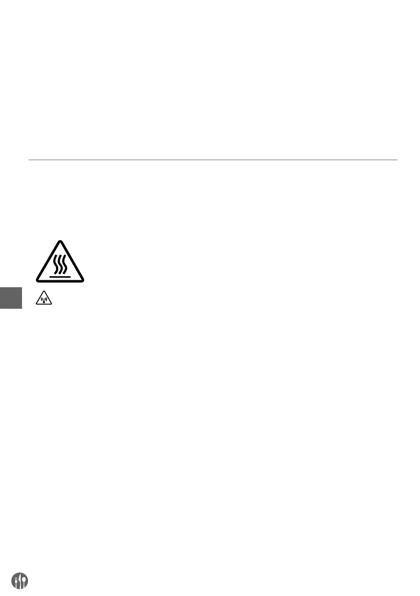 • Metallic objects such as knives, forks, spoons and lids should not be placed on the heat