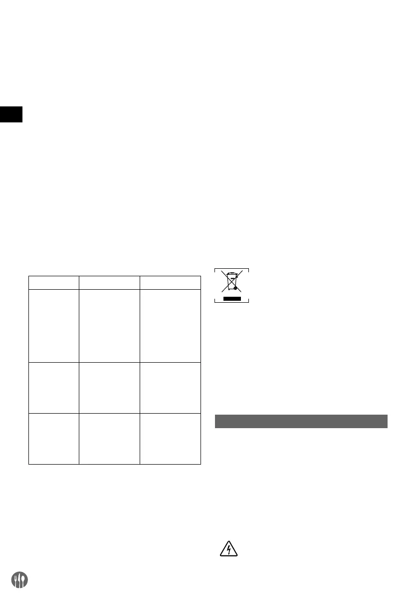 pas les composants électriques de l’appareil dans de l’eau ou