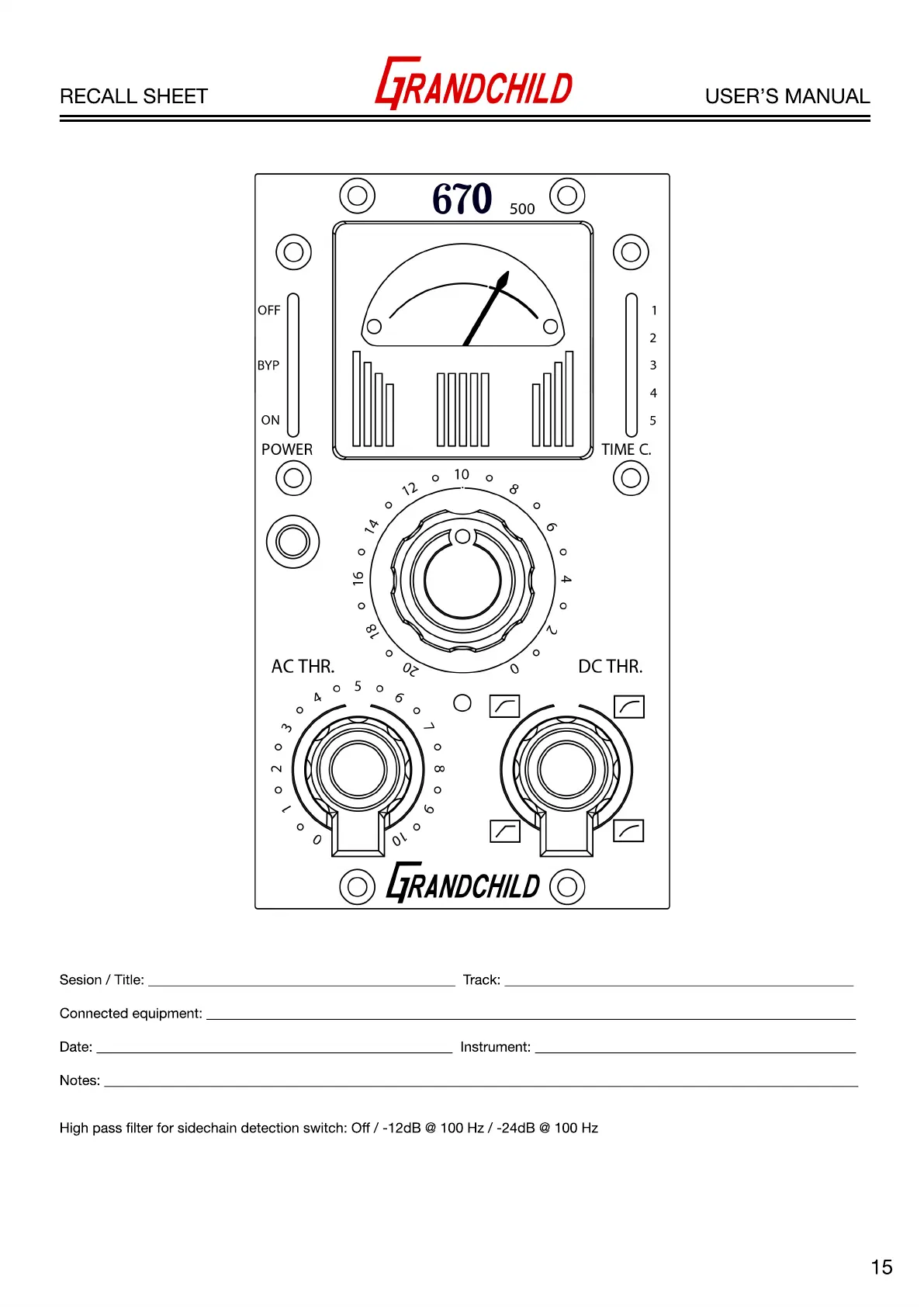 High pass filter for sidechain detection switch: Off / -12dB @ 100 Hz / -24dB @ 100 Hz