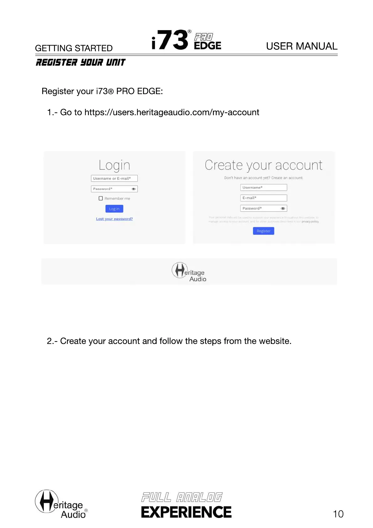 Bekijk gratis de handleiding van Heritage Audio i73 PRO 2, stel vragen en lees de antwoorden op veelvoorkomende problemen, of gebruik onze assistent om sneller informatie in de handleiding te vinden of uitleg te krijgen over specifieke functies.