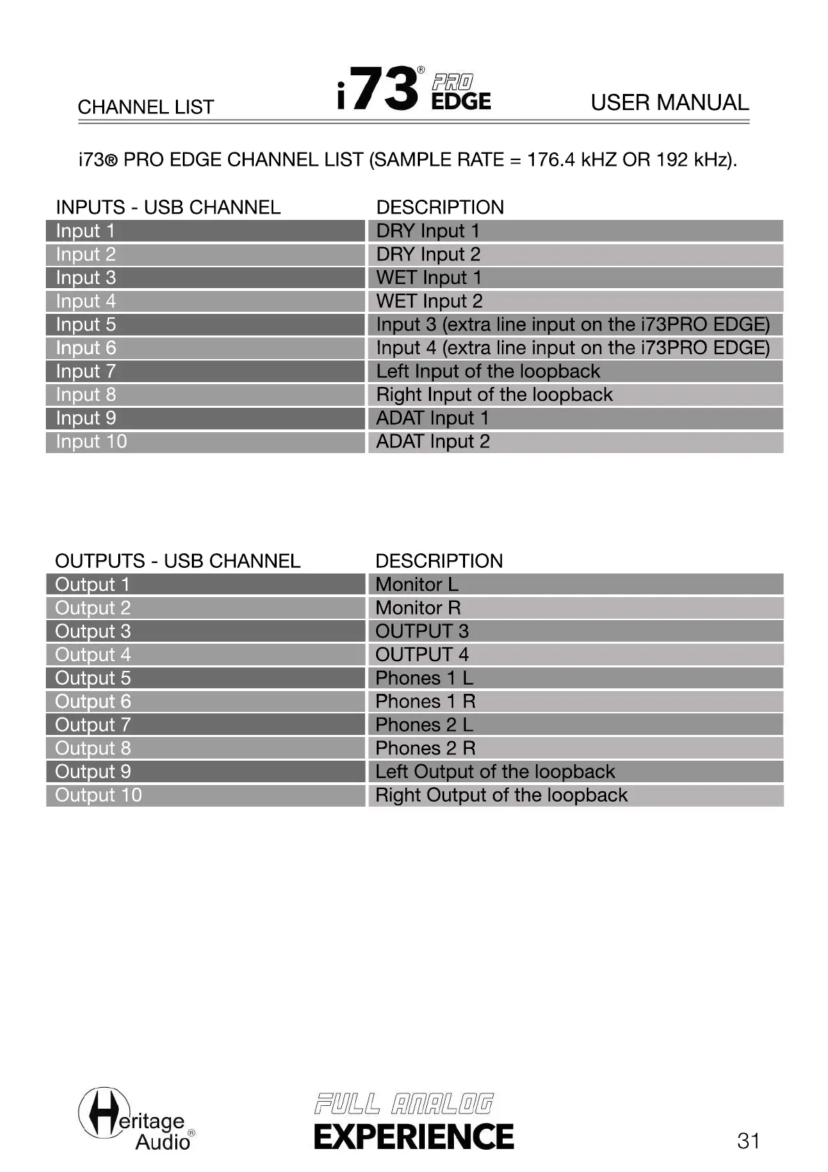 Bekijk gratis de handleiding van Heritage Audio i73 PRO 2, stel vragen en lees de antwoorden op veelvoorkomende problemen, of gebruik onze assistent om sneller informatie in de handleiding te vinden of uitleg te krijgen over specifieke functies.