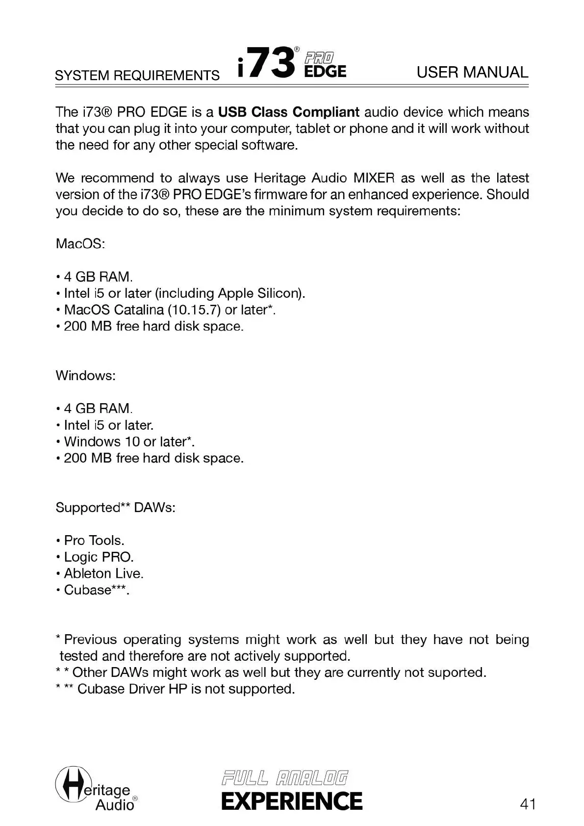 Bekijk gratis de handleiding van Heritage Audio i73 PRO 2, stel vragen en lees de antwoorden op veelvoorkomende problemen, of gebruik onze assistent om sneller informatie in de handleiding te vinden of uitleg te krijgen over specifieke functies.