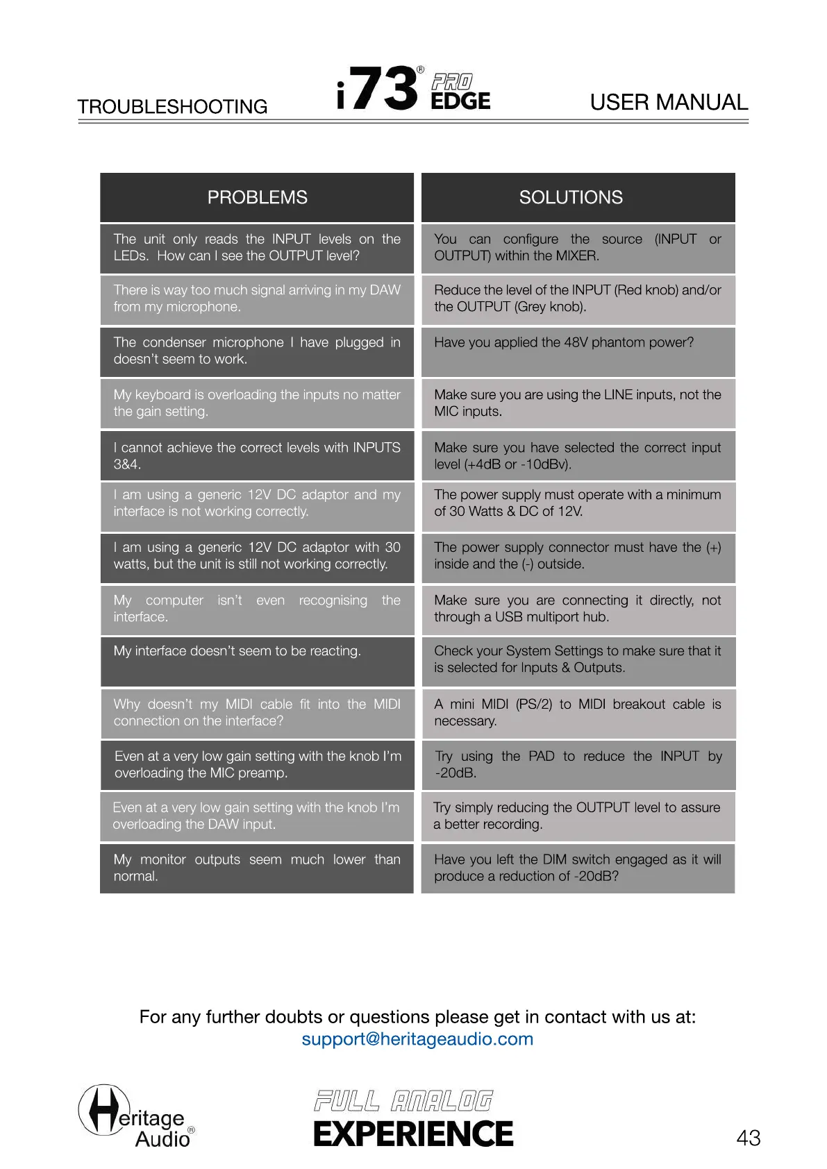 Bekijk gratis de handleiding van Heritage Audio i73 PRO 2, stel vragen en lees de antwoorden op veelvoorkomende problemen, of gebruik onze assistent om sneller informatie in de handleiding te vinden of uitleg te krijgen over specifieke functies.