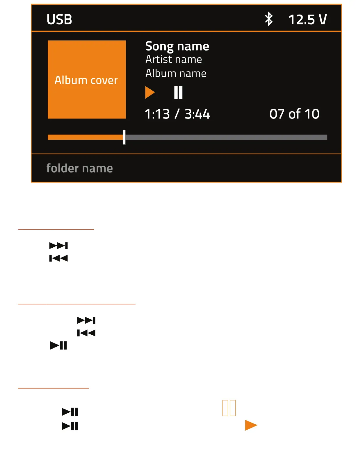 - Press the to resume playing the track/song that has been paused, lights up.