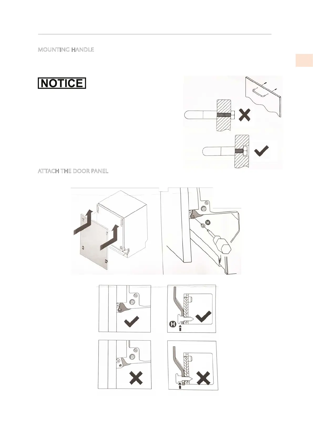 • Make sure the dishwasher door, complete with panel, opens fully.