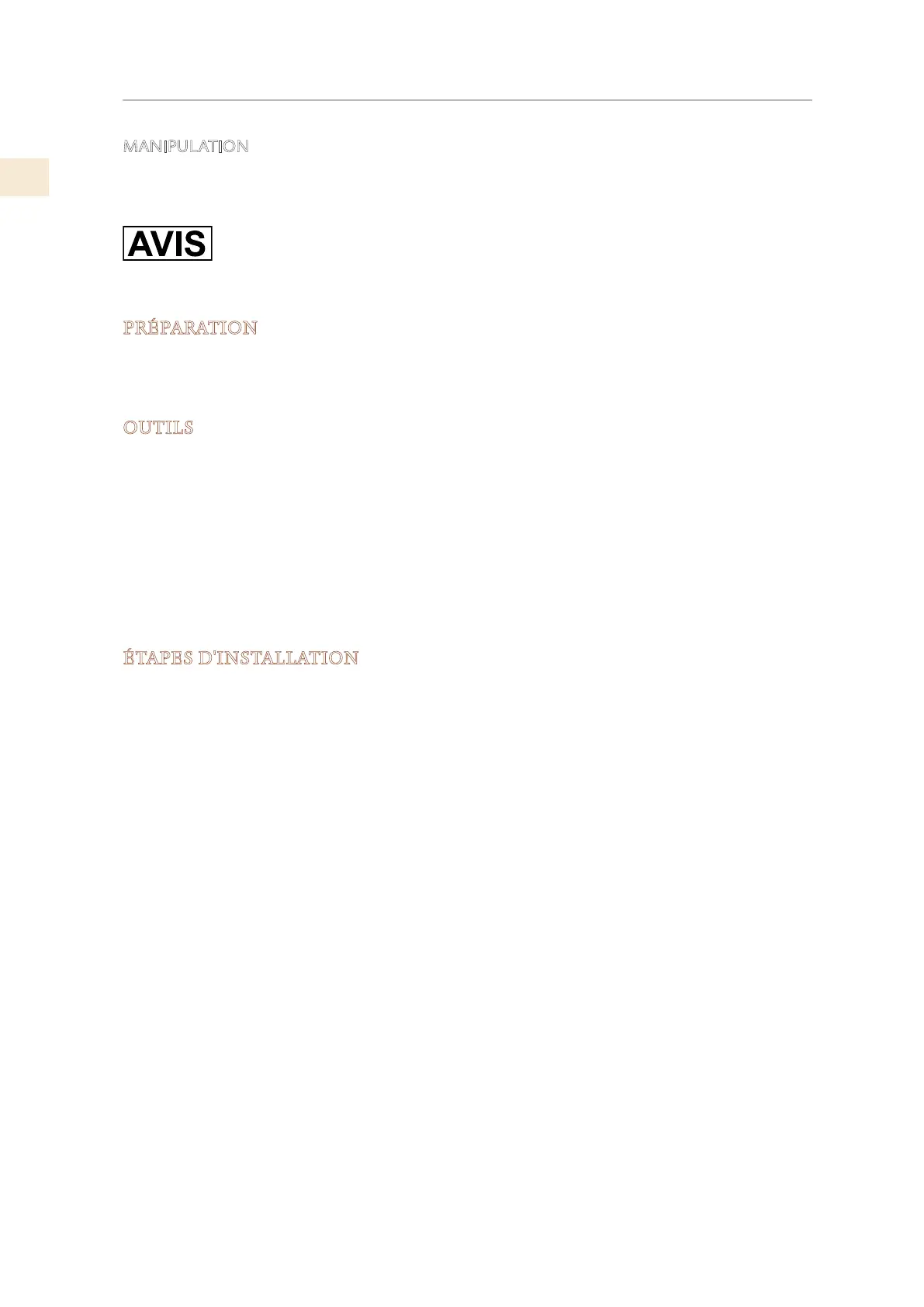 Les pages suivantes fournissent les informations nécessaires pour une installation correcte du