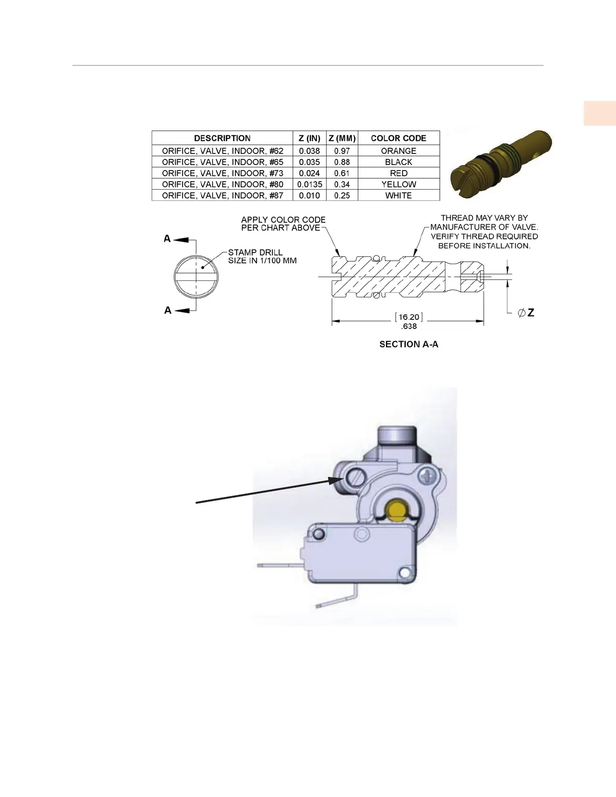 12. Replace the VALVE orifice as shown below. See the chart on page 6 to select the appropriate