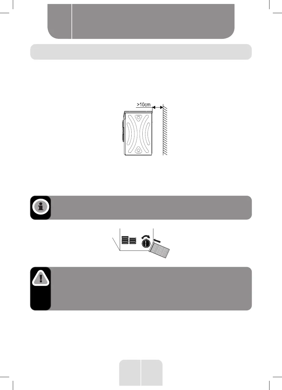 afstand van ten minste 10 cm van de muur. Geen enkel obstakel mag zich op minder dan