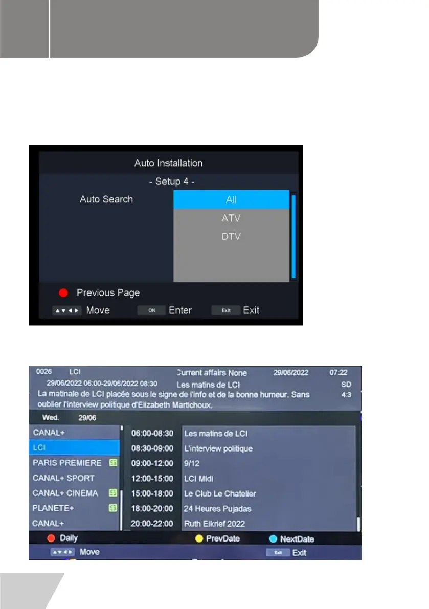 - Appuyez sur la touche TVG de la télécommande pour afficher le guide des programmes.