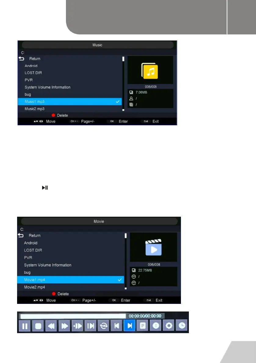 - Pour supprimer des fichiers, appuyez sur la touche ROUGE de la télécommande pour