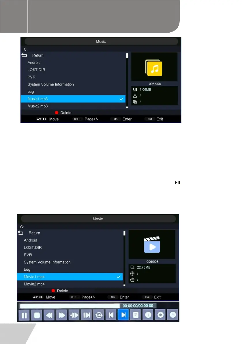 - Press the LEFT/RIGHT navigation button to select “Movie” in the main menu and press the