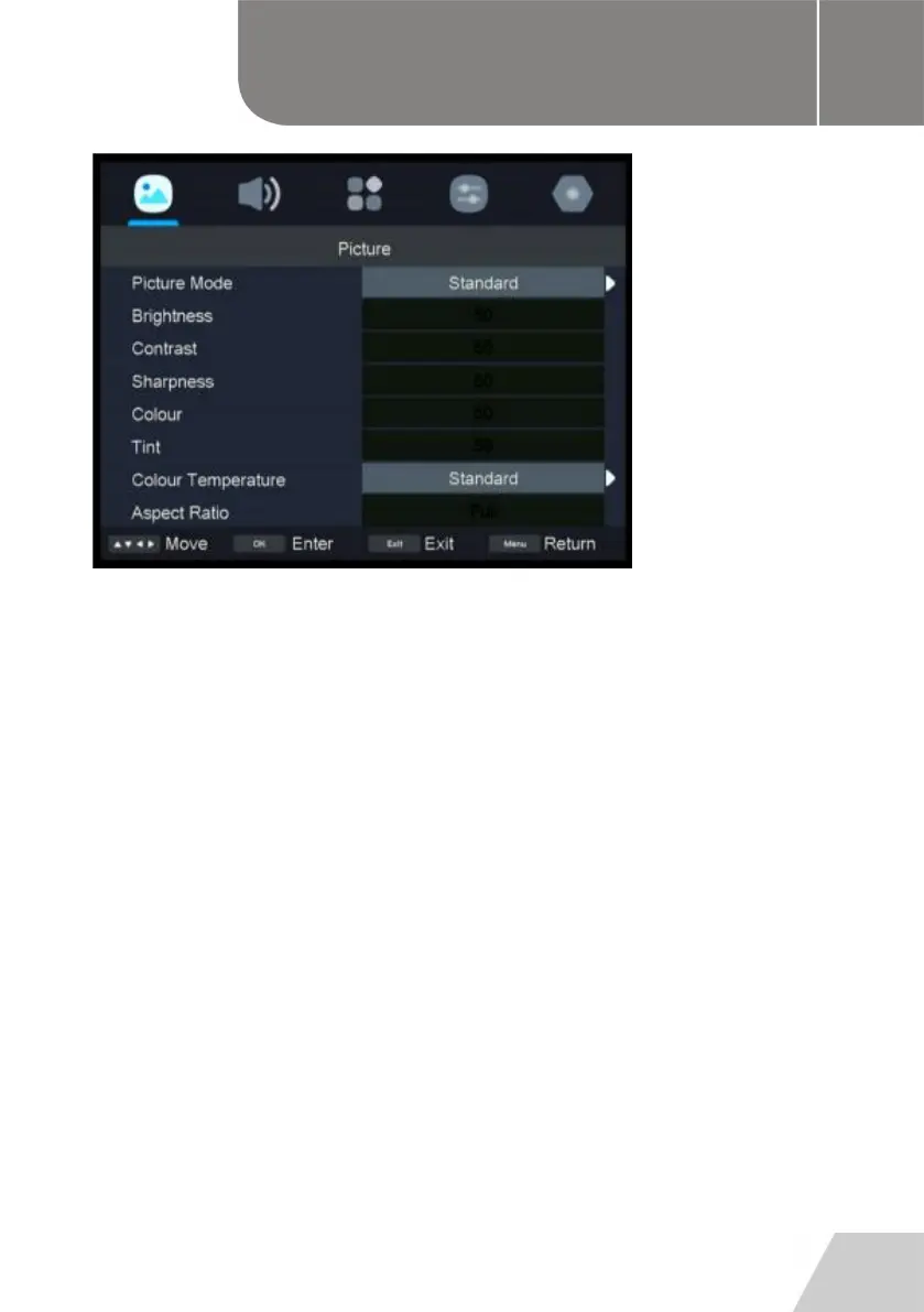(NOTE: Brightness, Contrast, Sharpness and Colour are adjustable only when Picture