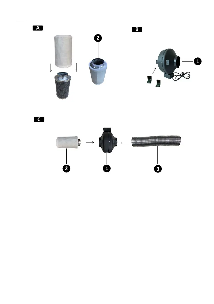g) Dla łączenia wentylatora (1) z filtrem węglowym (2) wykorzystać