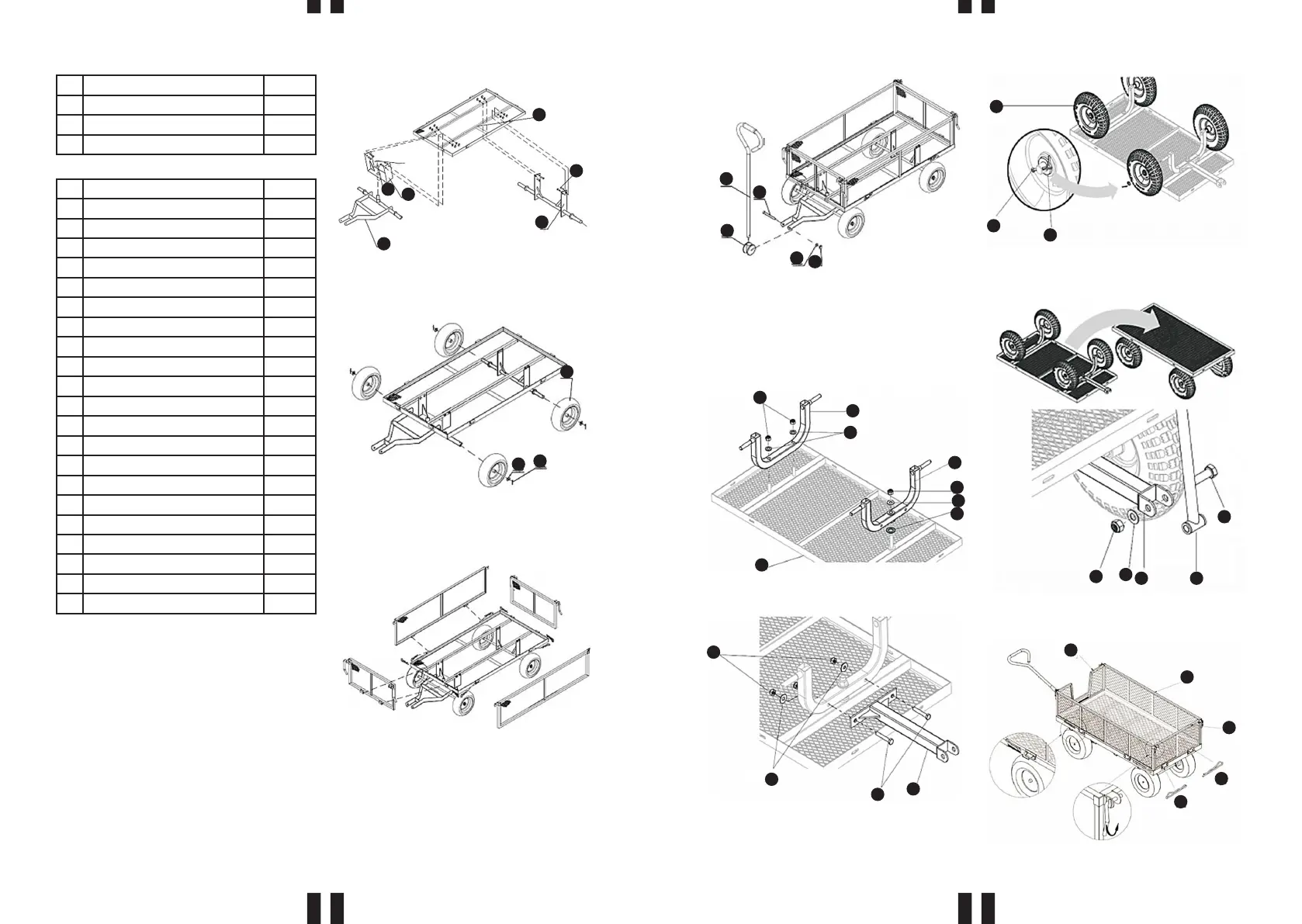 Wagens, dann die Seitenleisten (J). Die Scharniere