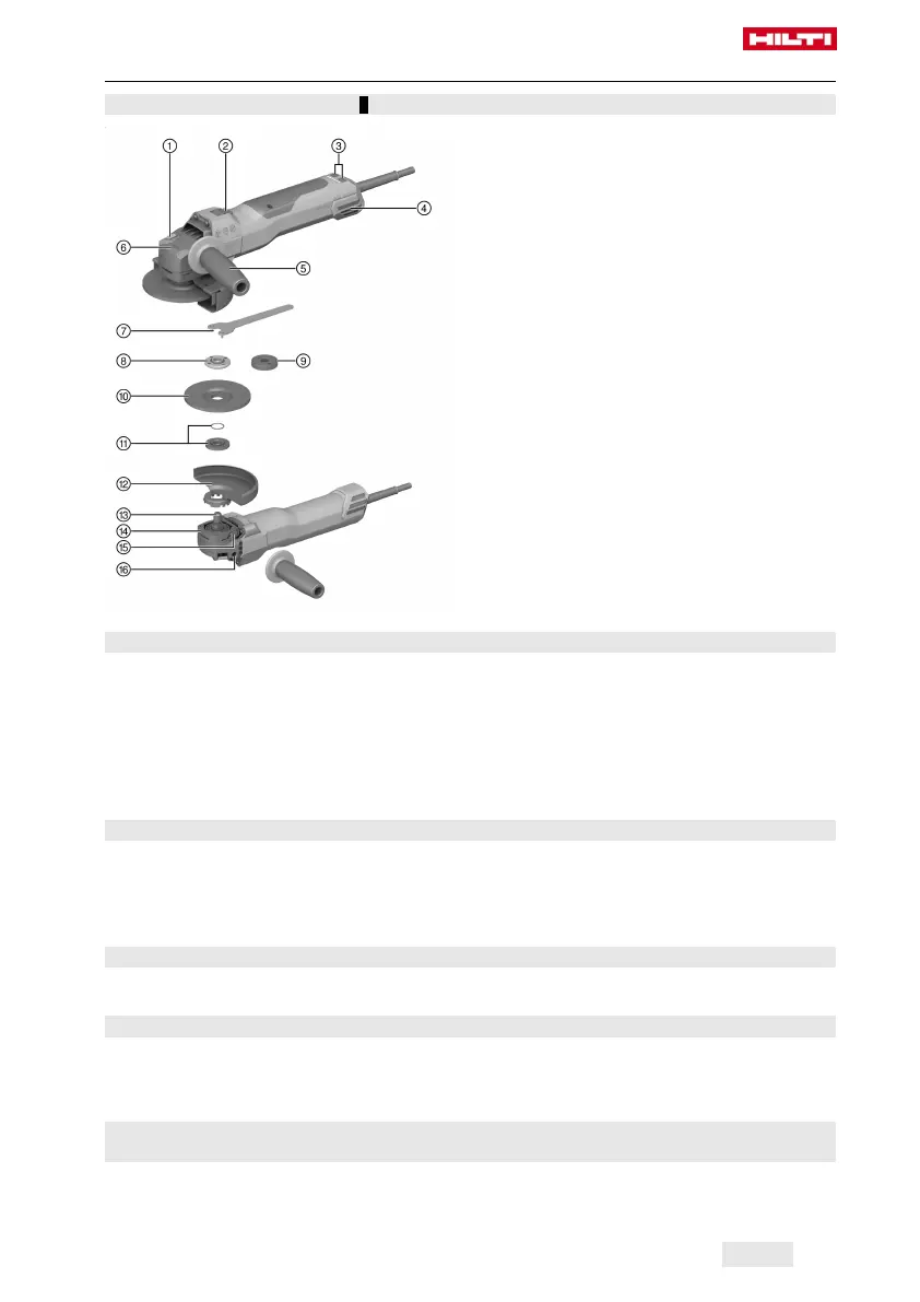 Meuleuse d'angle, poignée latérale, carter de protection standard, cache avant, bride de serrage, écrou de