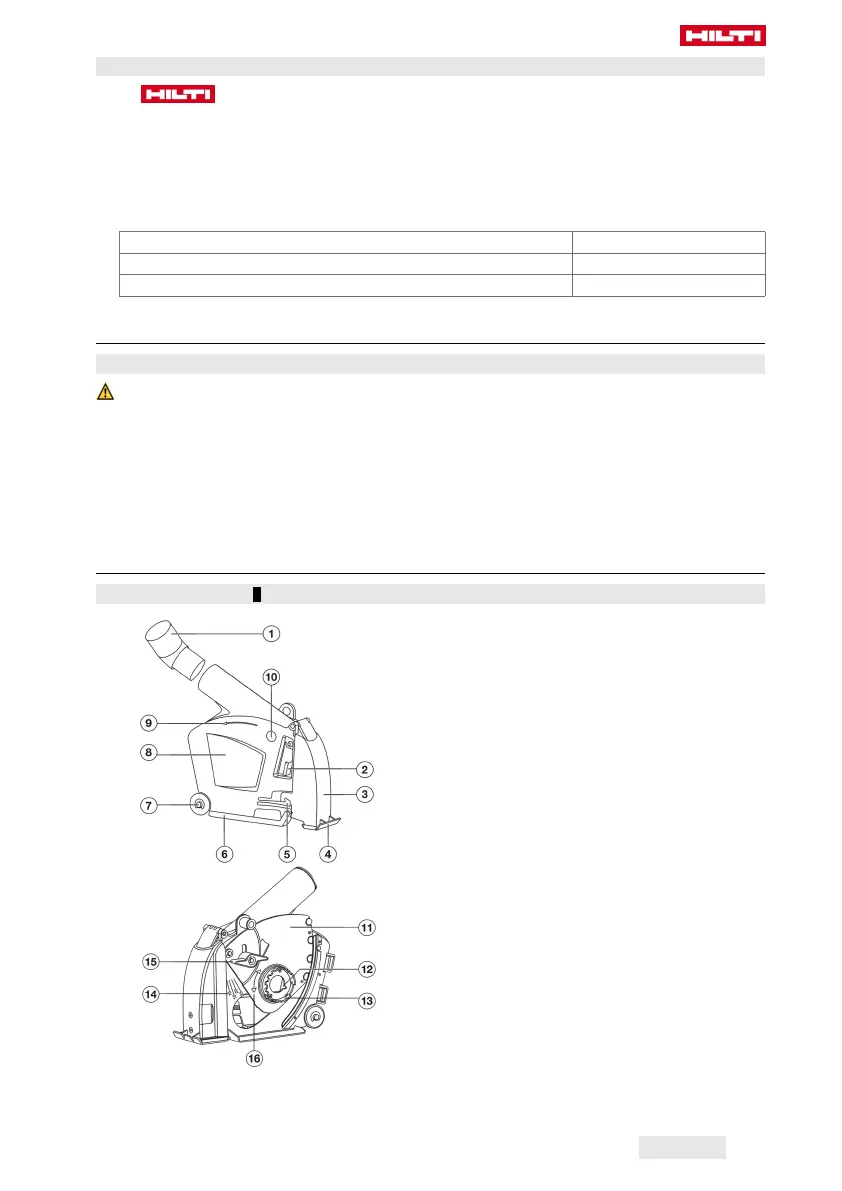 ▶ Tudi kadar je pokrov nameščen, vedno uporabljajte stranski ročaj dovoljenega orodja Hilti.