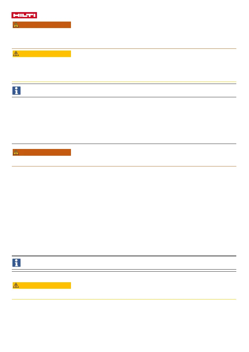 • Do not use the product if signs of damage are found or if parts malfunction. Immediately have the product repaired by Hilti Service.
