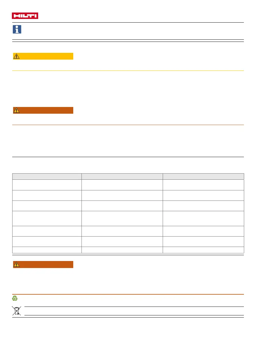 En cas de défaillances non énumérées dans ce tableau ou auxquelles il n'est pas possible de remédier sans aide, contacter le S.A.V. Hilti.