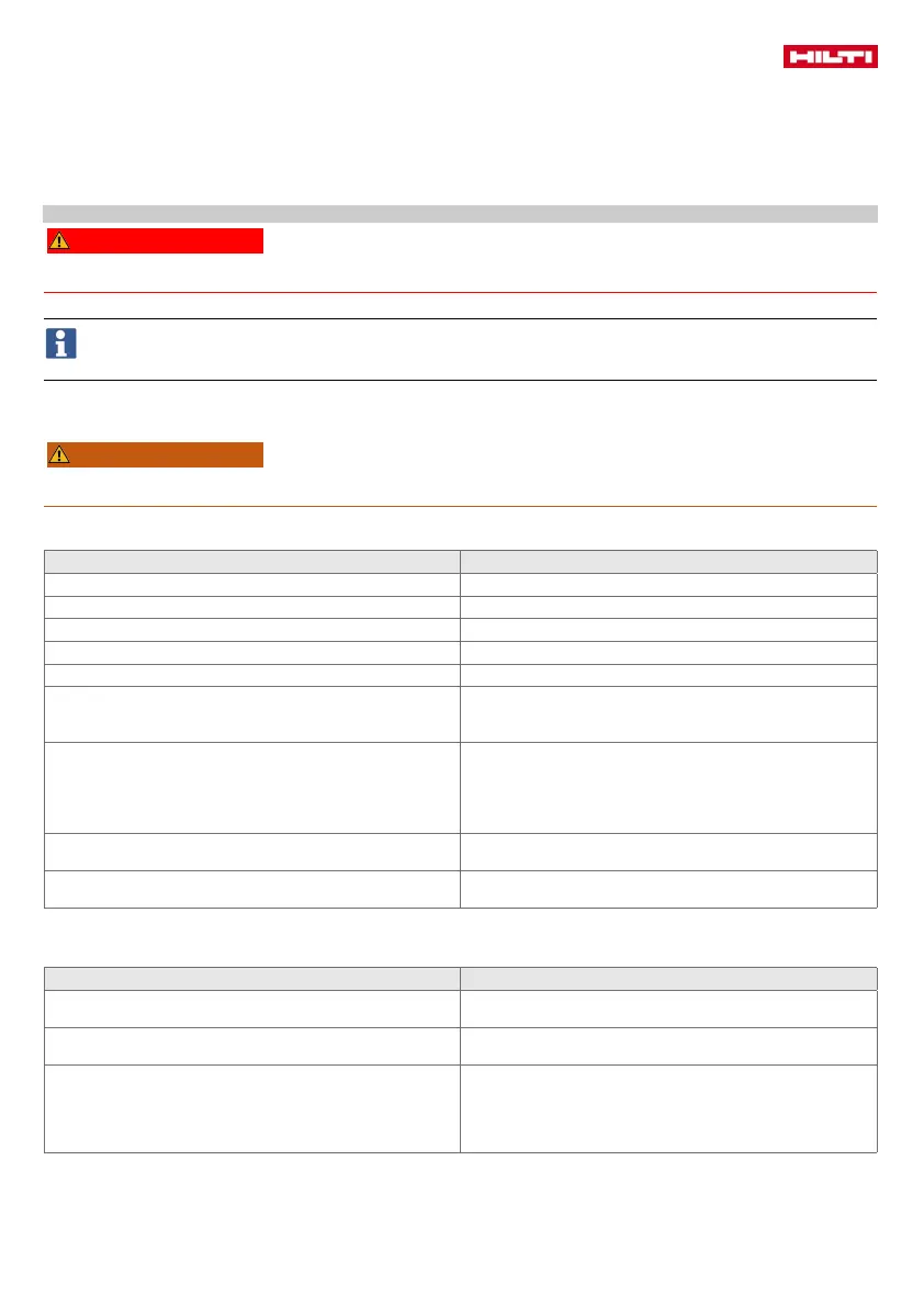 • For these batteries, use only Hilti chargers of the type series stated in the table at the end of these operating instructions.