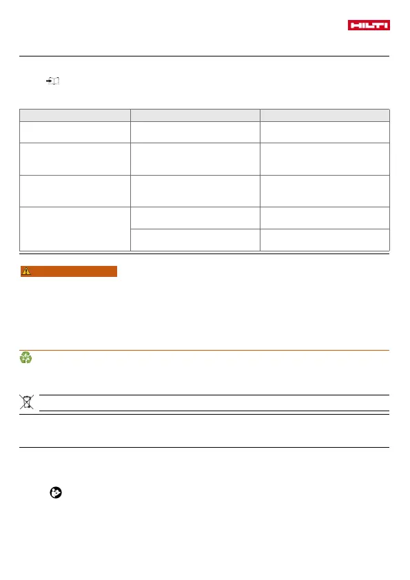 ▶ Entsorgen Sie den Akku in Ihrem Hilti Store oder wenden Sie sich an ihr zuständiges Entsorgungs-