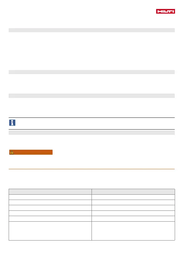 • For these batteries, use only Hilti chargers of the type series stated in the table at the end of these