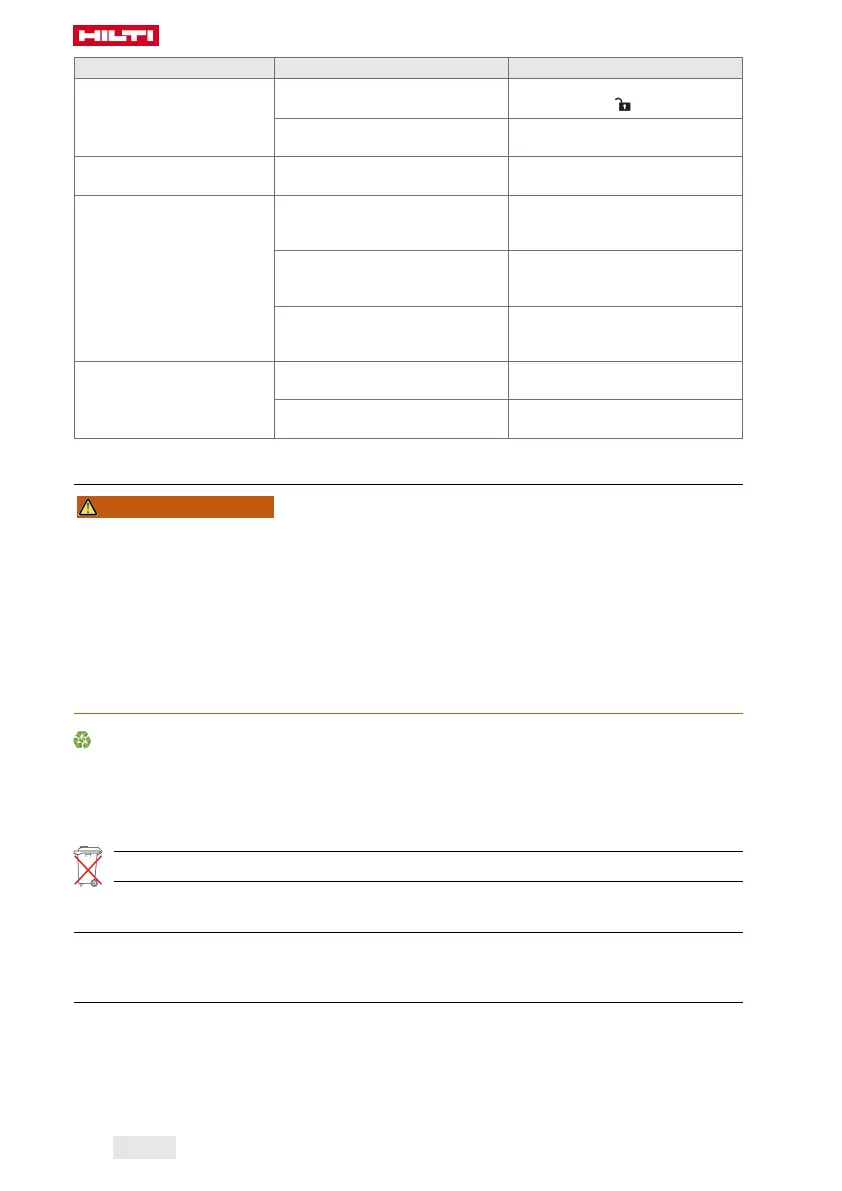 ▶ Bitte wenden Sie sich bei Fragen zu den Garantiebedingungen an Ihren lokalen Hilti Partner.