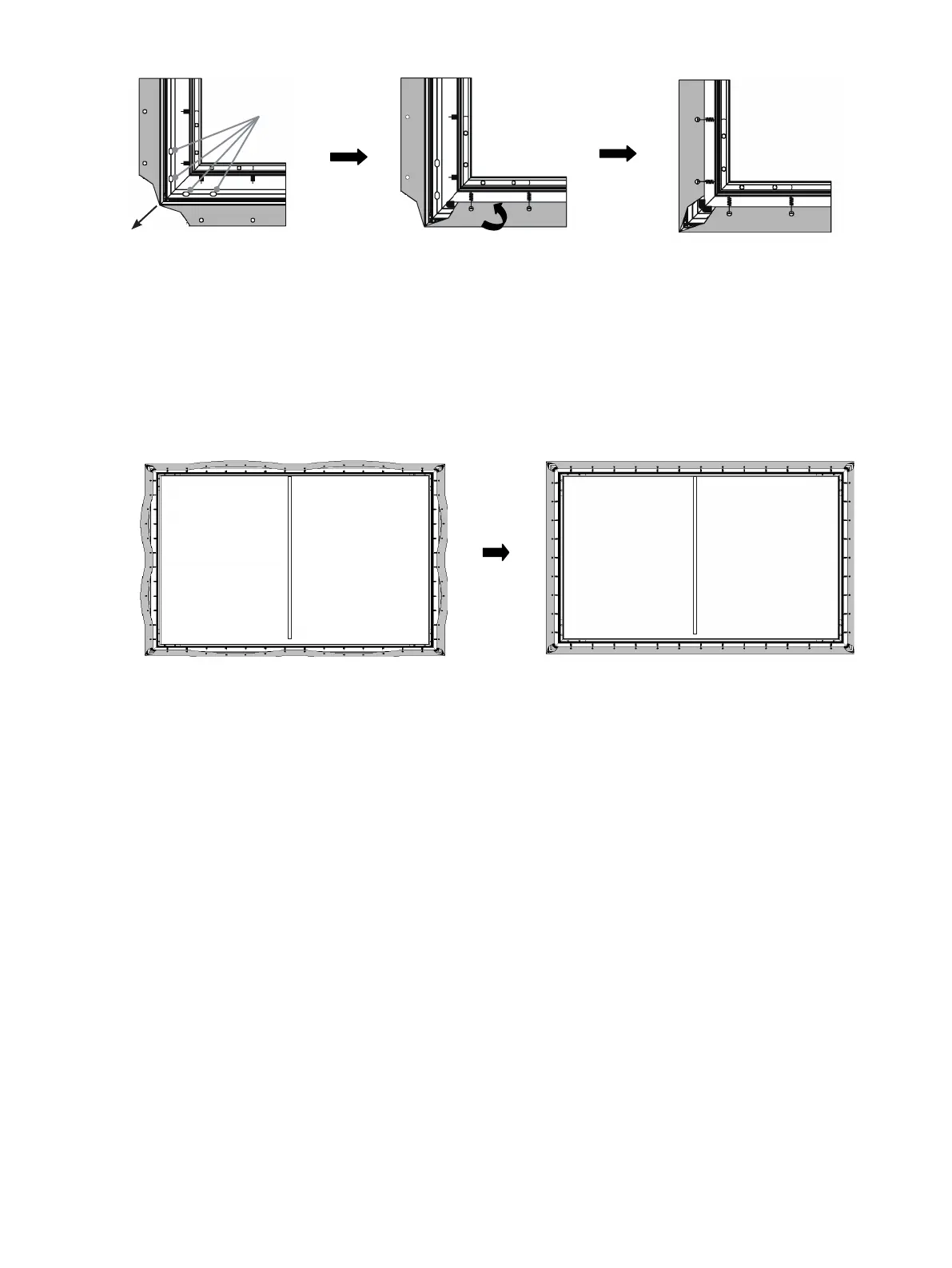 3) When finishing the steps above, make the screen to stand up and check if the screen material is stretched out of the frame.
