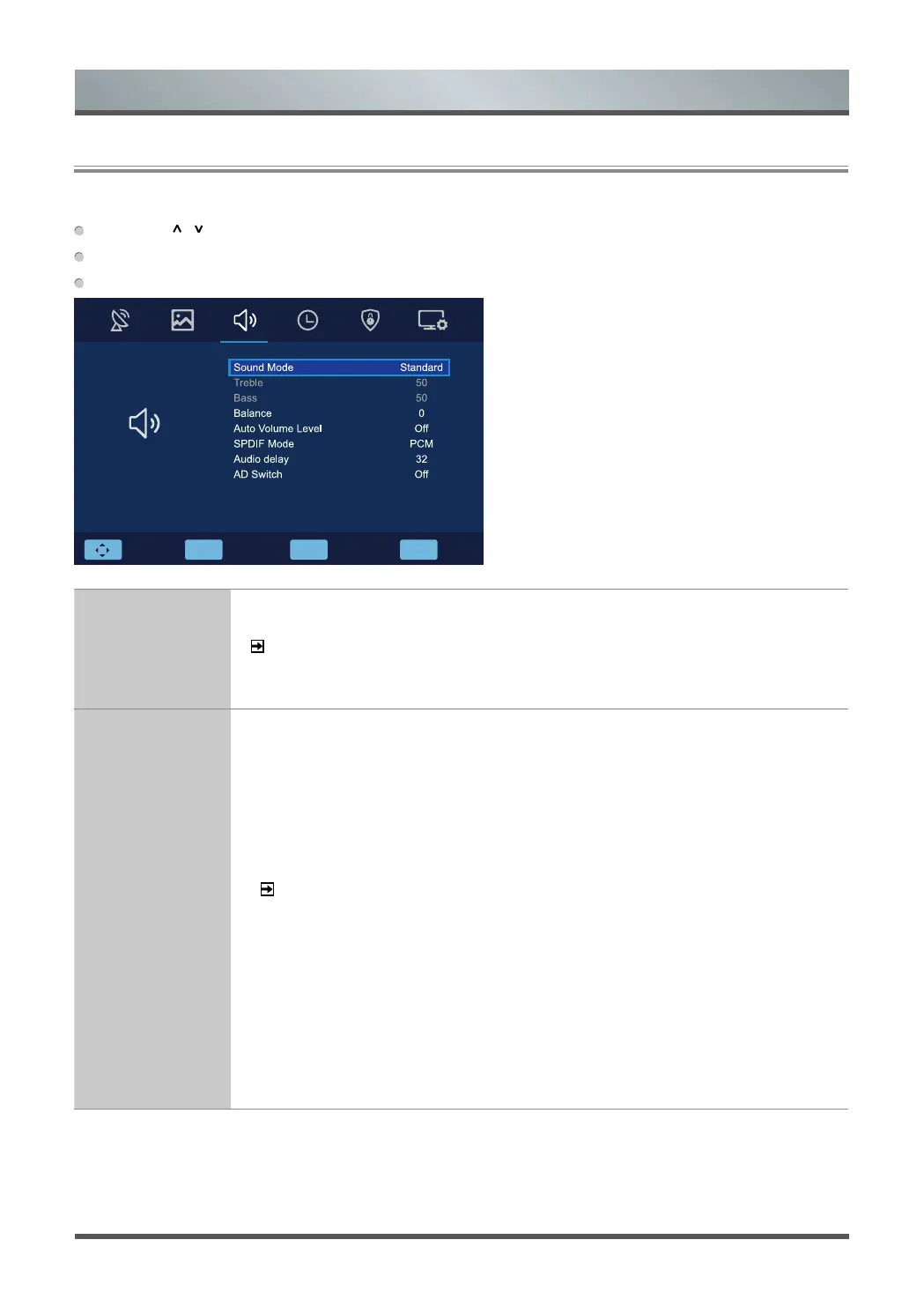 • Audio Volume Level: Used for reducing the difference between channel and