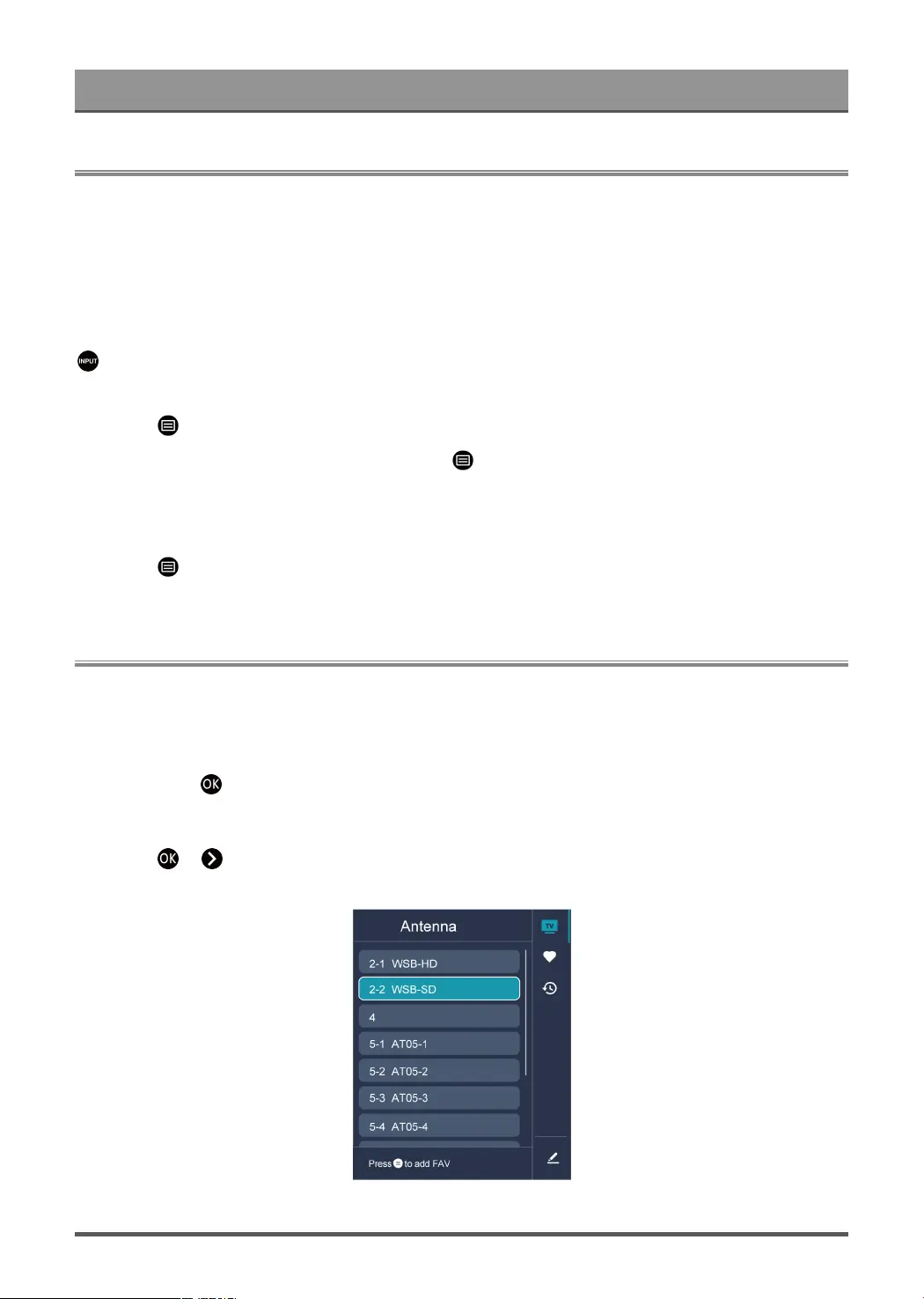 You can obtain quick access to the channel list, favorite channel list or use relevant features with ease when