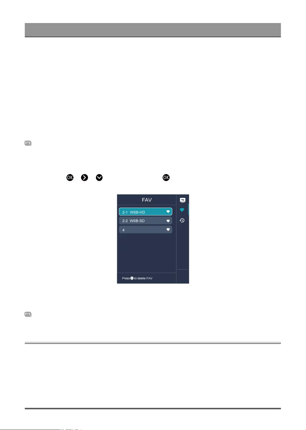 In Live TV, press > > to select FAV, and press button to display the favorite list.