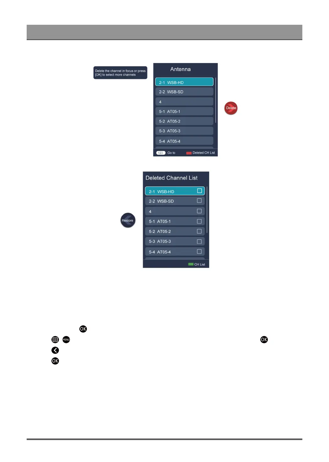 Press / button, select the channel(s) you want to add to the favorite list by pressing button.