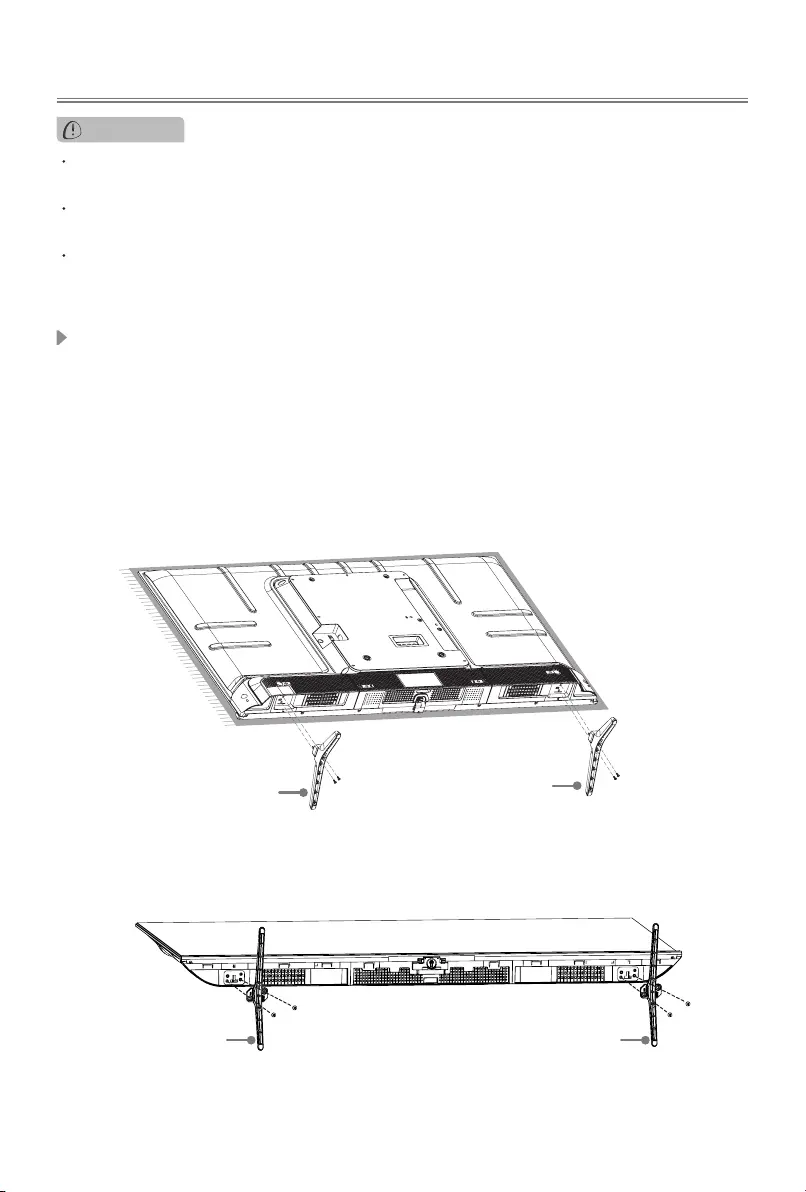3. Secure the stands to the TV with the 4 screws in accessory tightly.