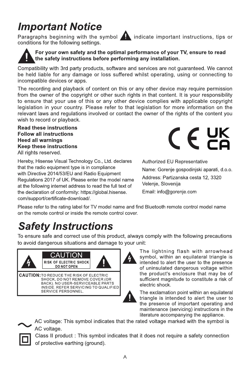 Bekijk gratis de handleiding van Hisense 65A6QTUK, stel vragen en lees de antwoorden op veelvoorkomende problemen, of gebruik onze assistent om sneller informatie in de handleiding te vinden of uitleg te krijgen over specifieke functies.
