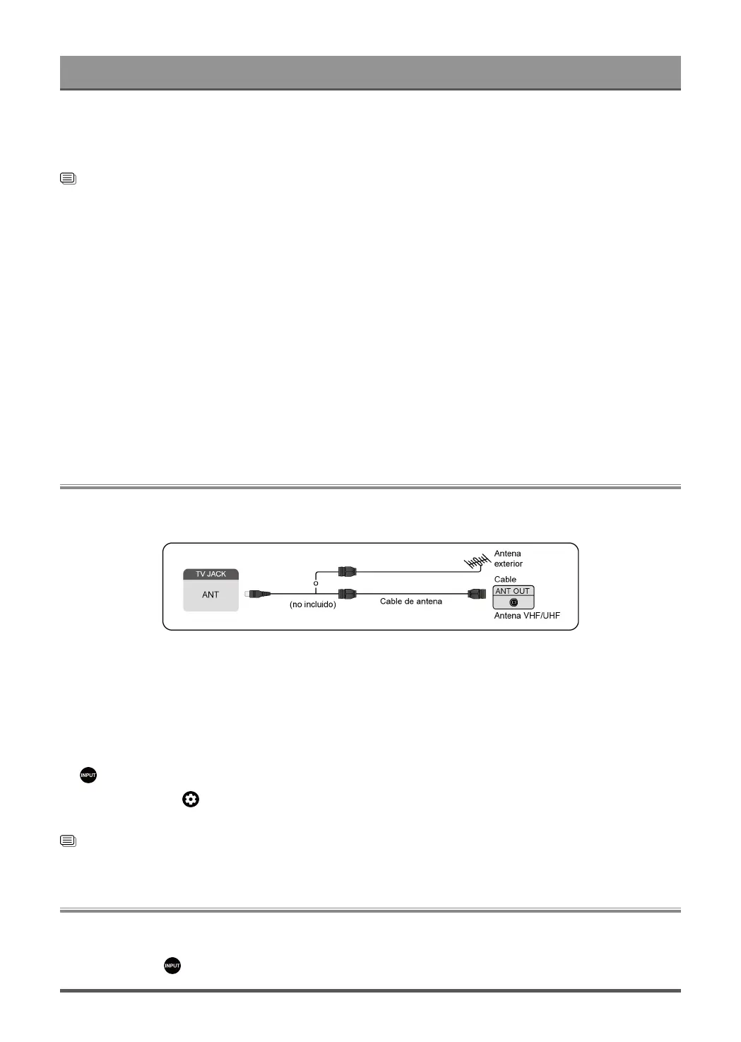 Presione el botón en el control remoto para seleccionar Configuración > Canales y entradas >
