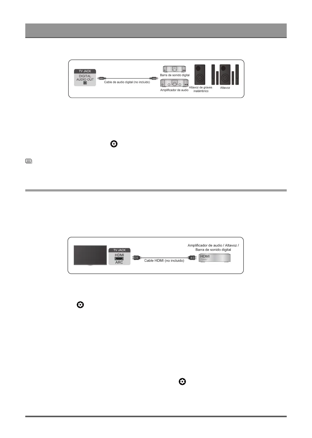 dispositivos externos > Conexión de un sistema de audio digital con ARC en este manual.