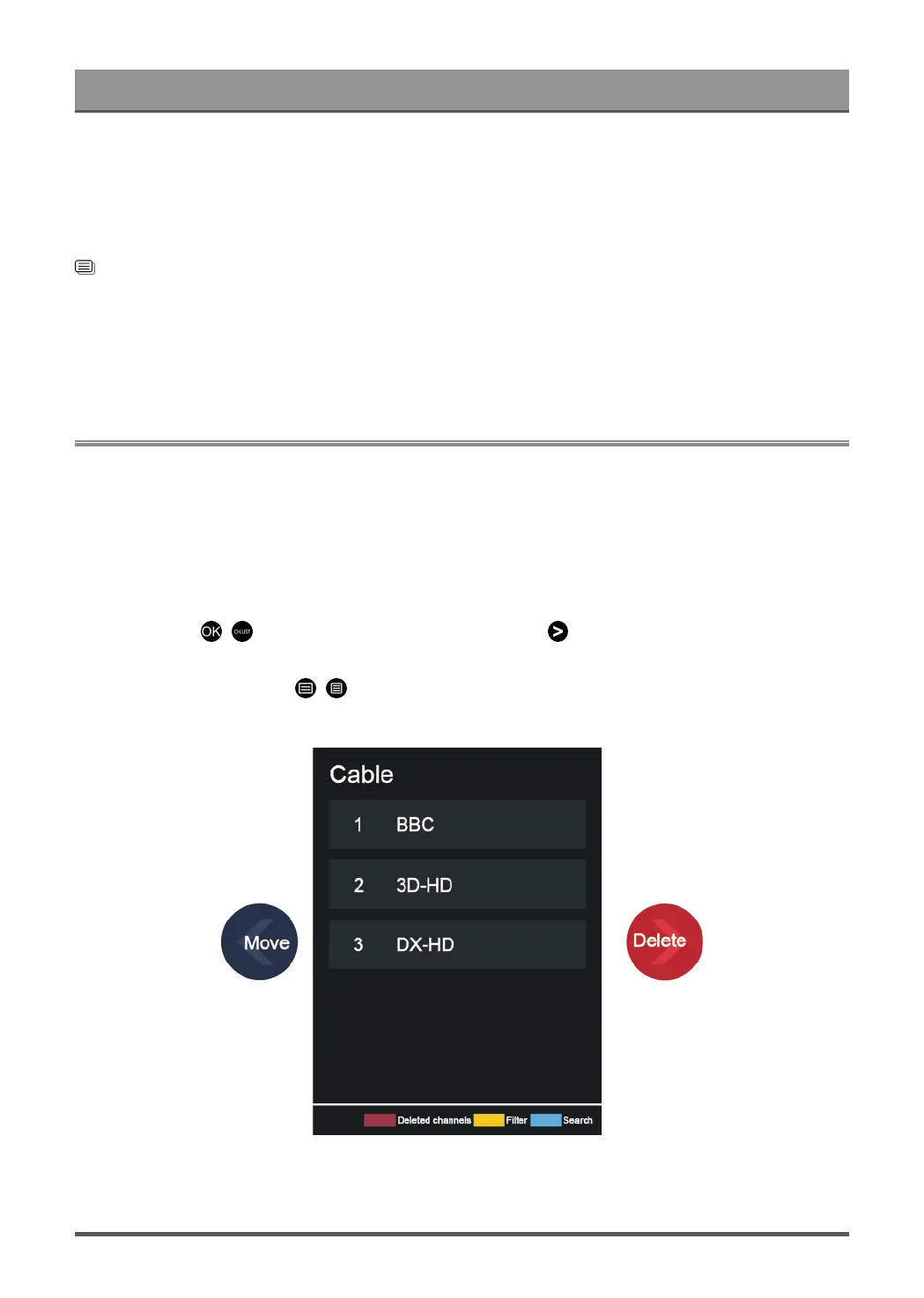Alternatively, in Live TV, press / button, select Settings > Channel > Channel Edit, then select a Live