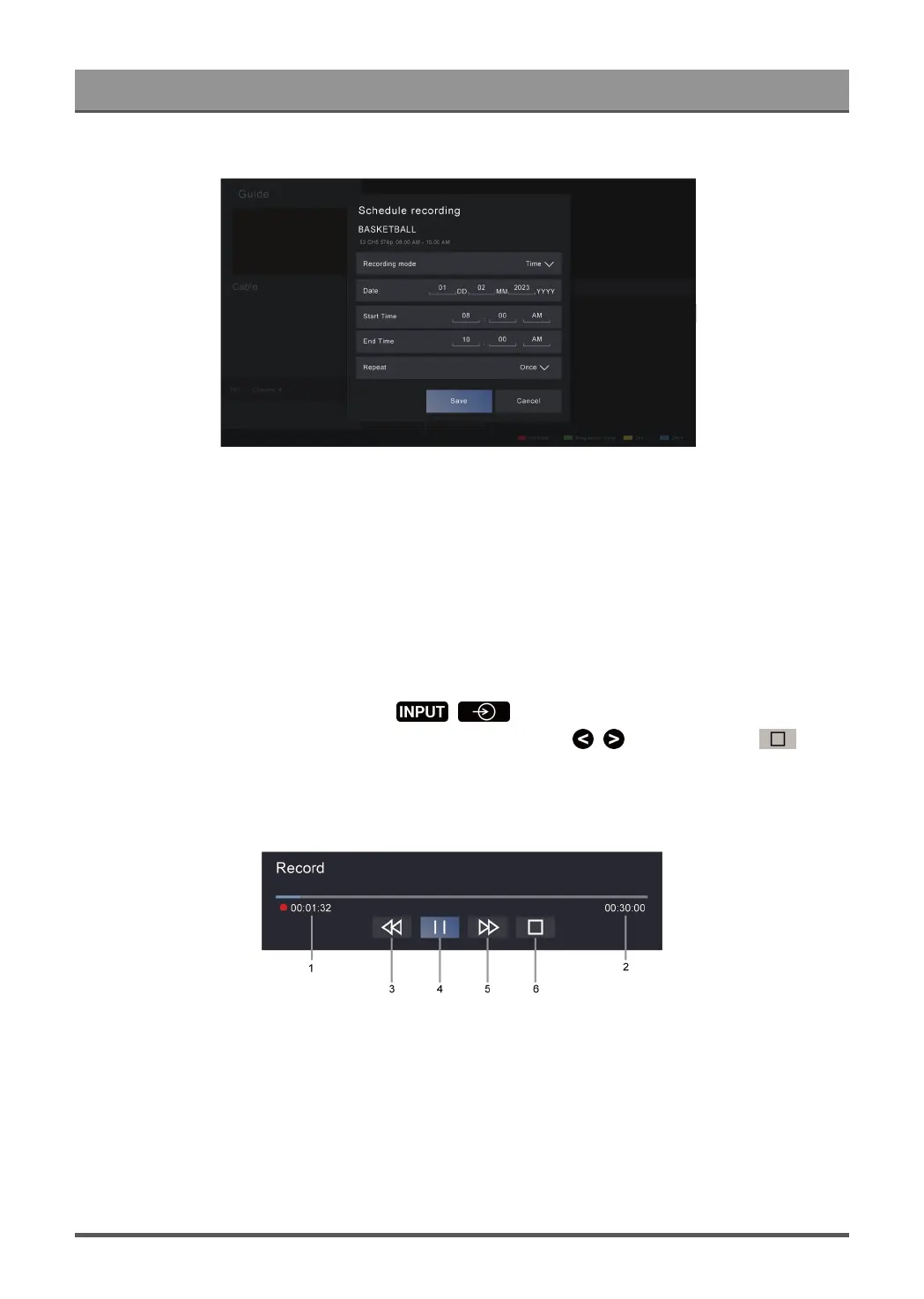 If you want to manually stop recording, press / button on your remote control and select TV to