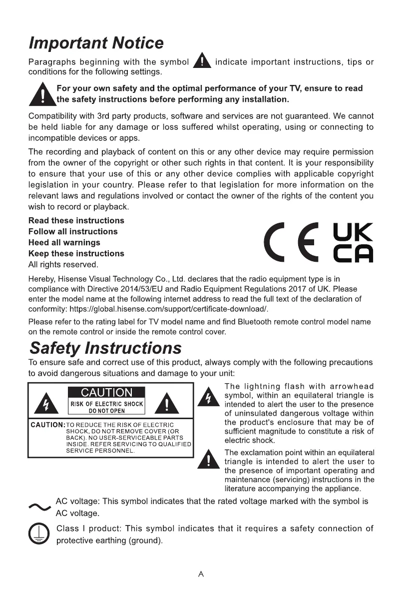 Bekijk gratis de handleiding van Hisense 65A85N, stel vragen en lees de antwoorden op veelvoorkomende problemen, of gebruik onze assistent om sneller informatie in de handleiding te vinden of uitleg te krijgen over specifieke functies.