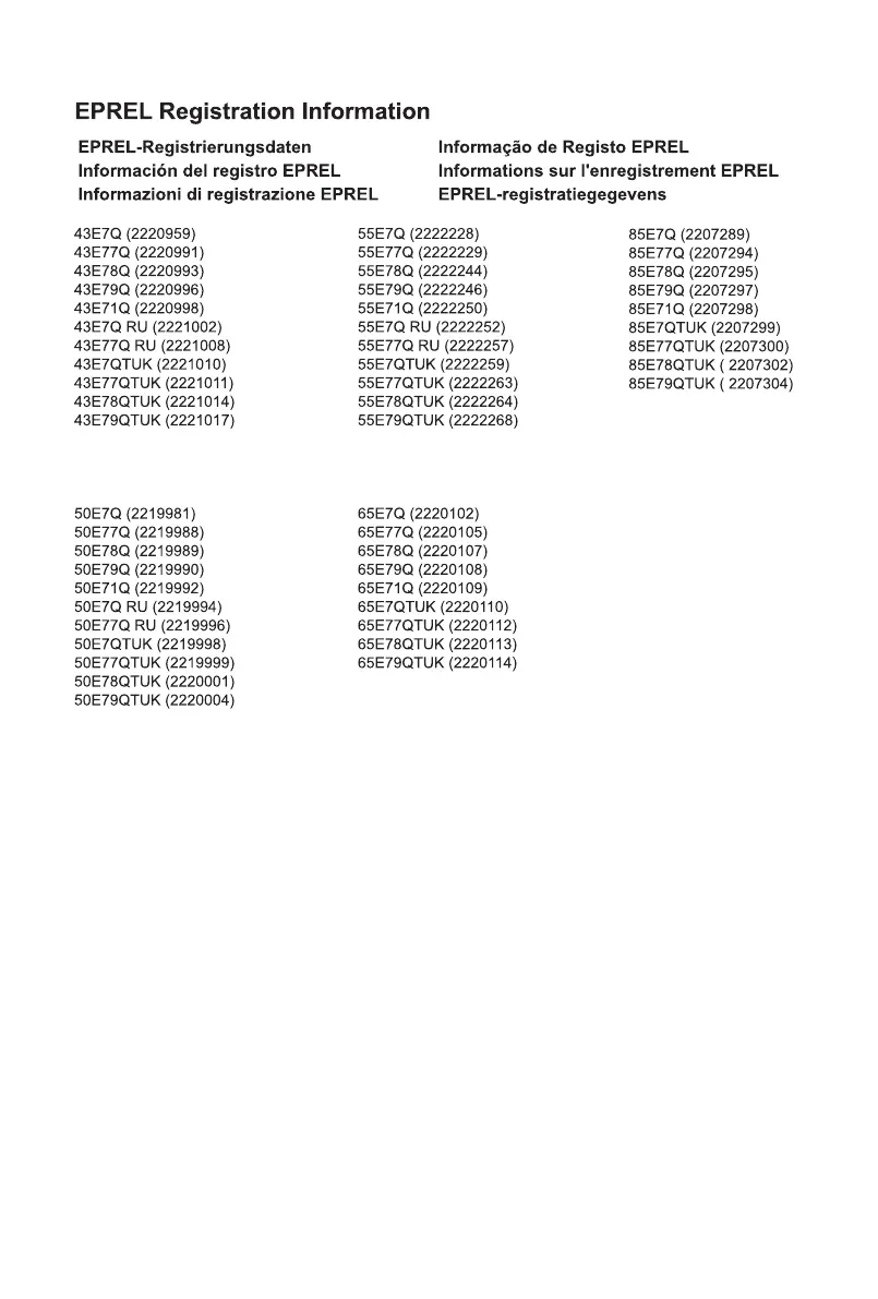 Bekijk gratis de handleiding van Hisense 65E7QTUK, stel vragen en lees de antwoorden op veelvoorkomende problemen, of gebruik onze assistent om sneller informatie in de handleiding te vinden of uitleg te krijgen over specifieke functies.