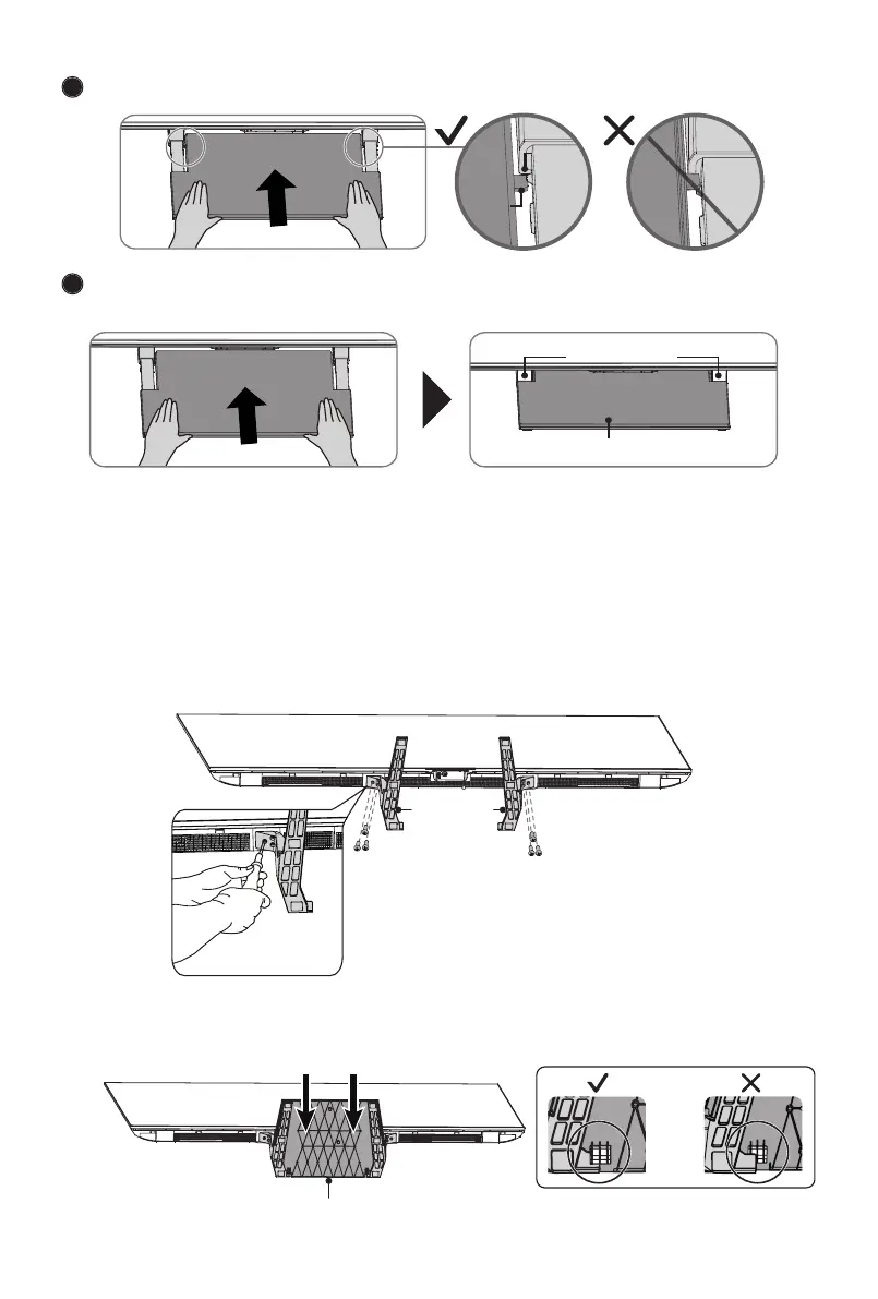 2. Take out the 2 stands and then insert the stands into the bottom slots of the TV.
