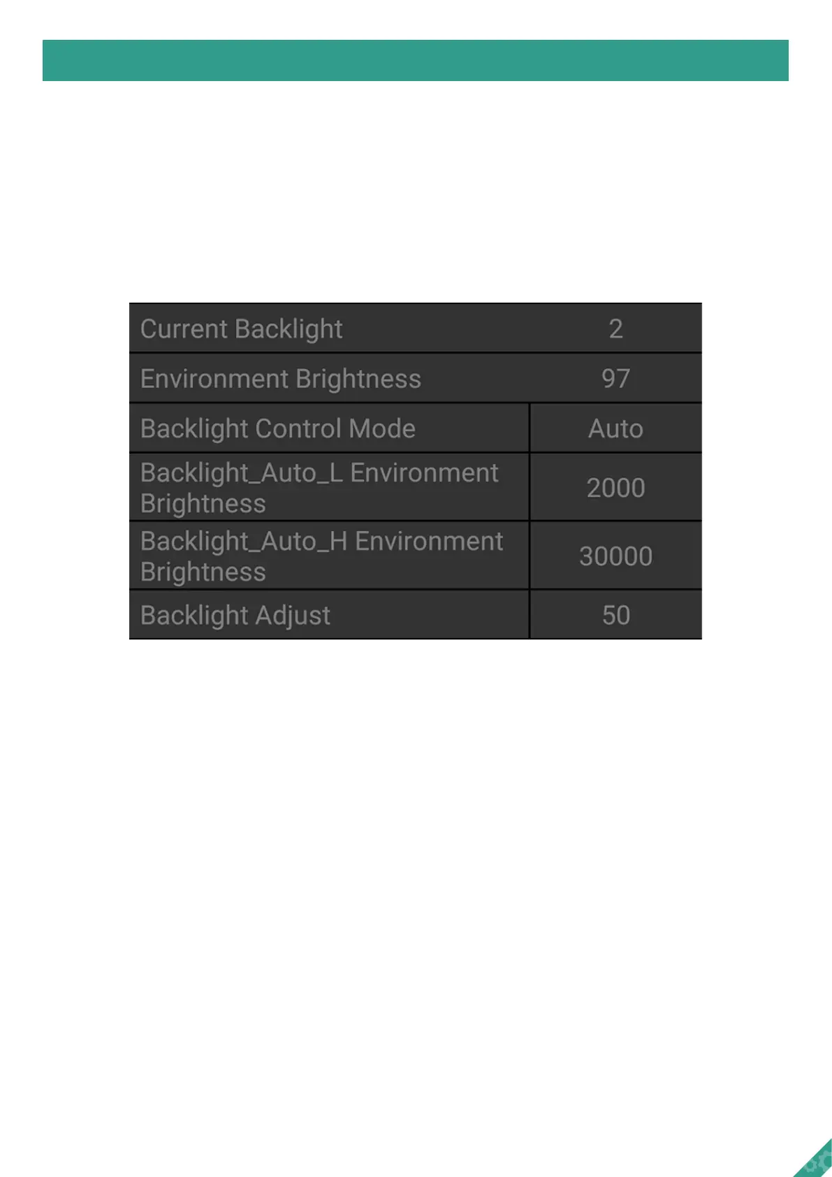 Backlight_Auto_L Environment Brightness: The lower limit value