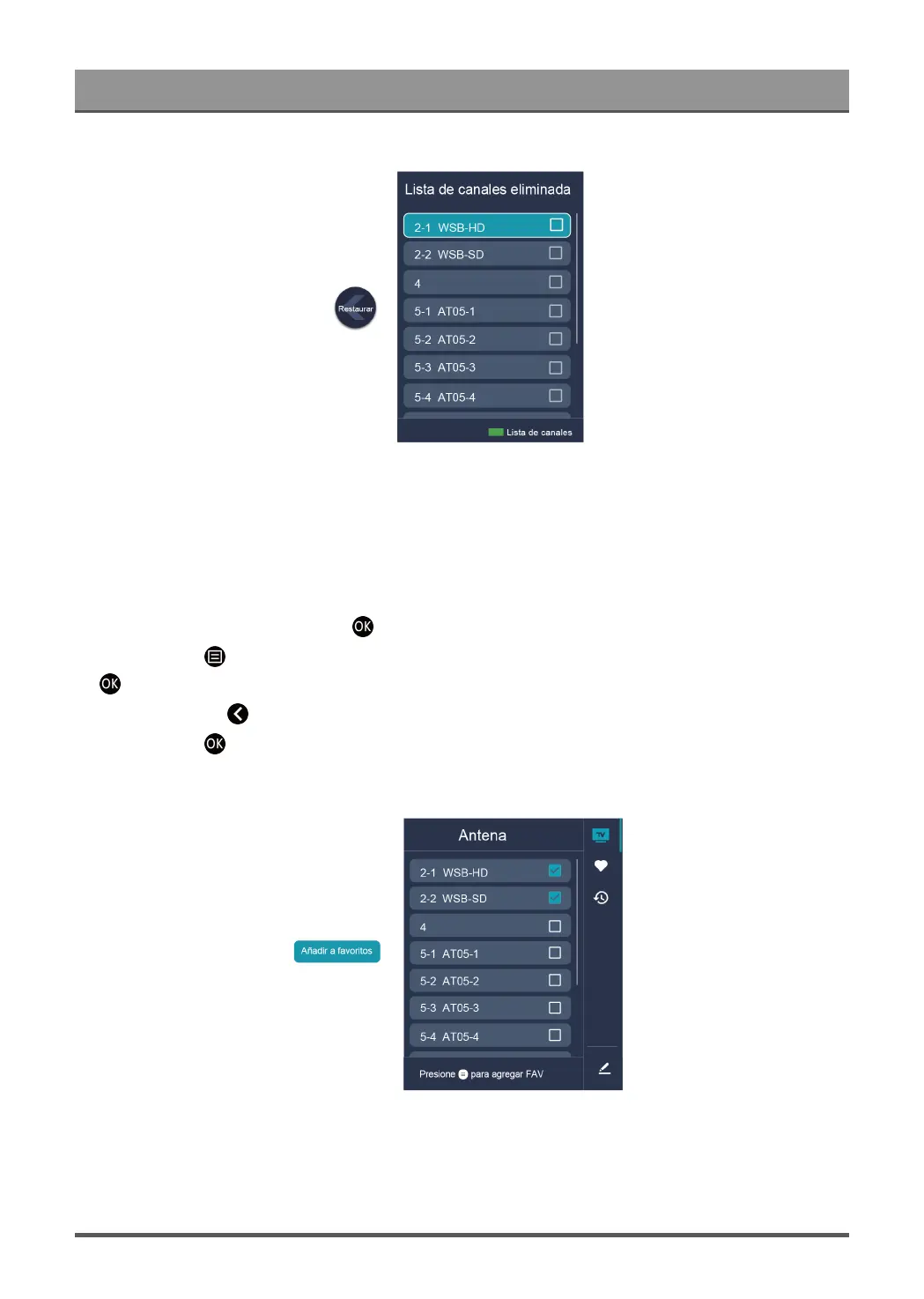 Pulse el botón para seleccione los canales que desea añadir a la lista de favoritos pulsando el botón