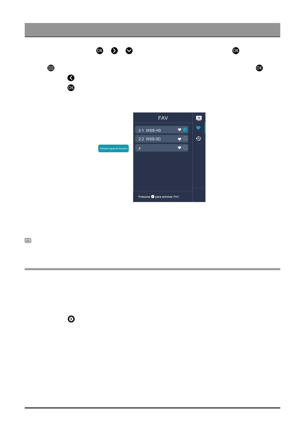 En TV en directo, presione > > para seleccionar FAV y presione el botón para mostrar la