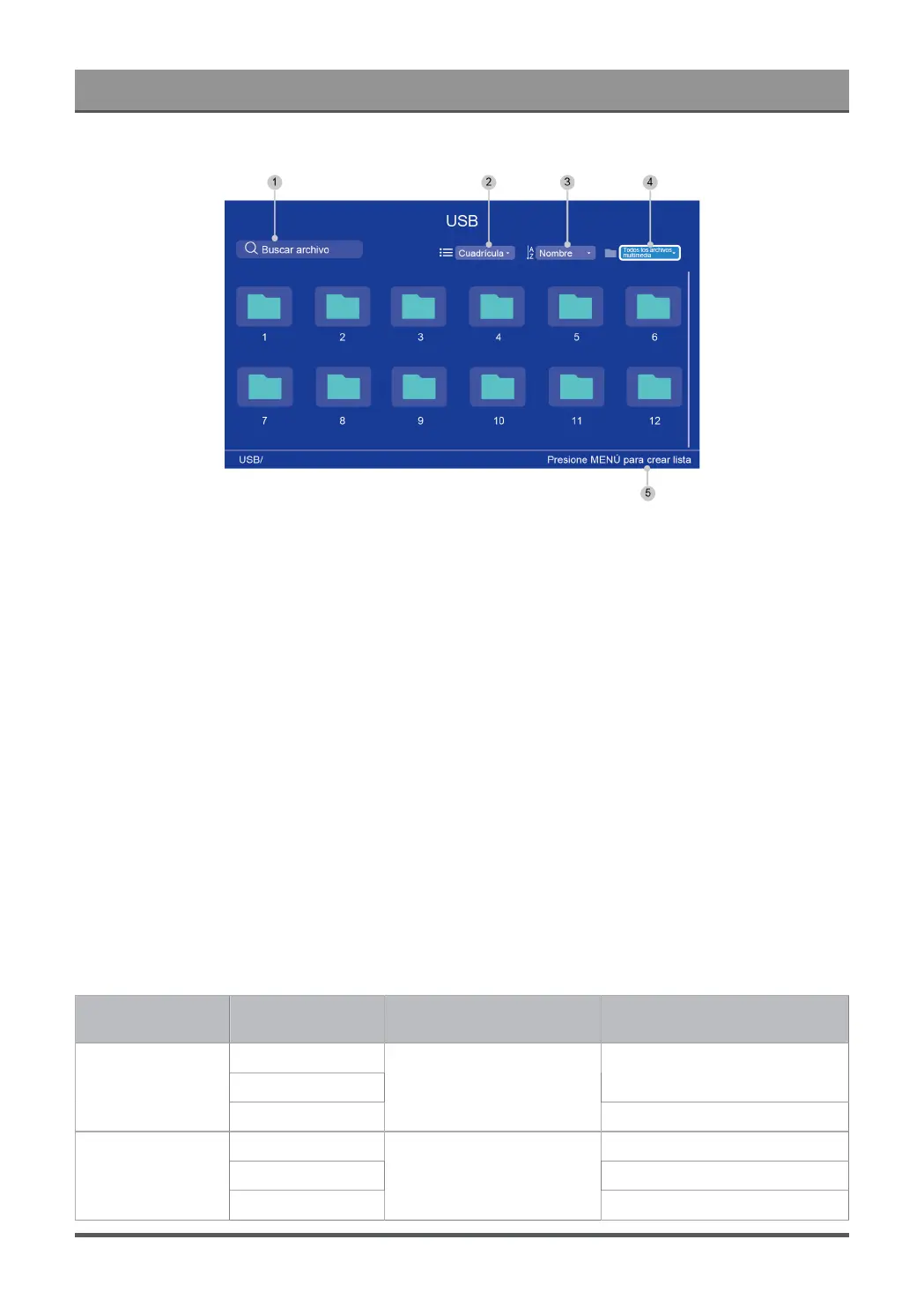 5 Cree una lista de reproducción de fotos, música o vídeo./Pulse el botón IZQUIERDO para